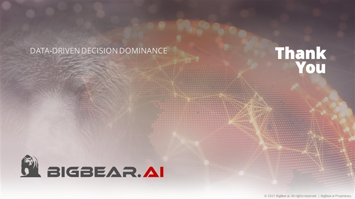 DATA-DRIVEN DECISION DOMINANCE Thank You © 2021 BigBear.ai. All rights reserved | BigBear.ai Proprietary.DATA-DRIVEN DECISION DOMINANCE Thank You © 2021 BigBear.ai. All rights reserved | BigBear.ai Proprietary.
